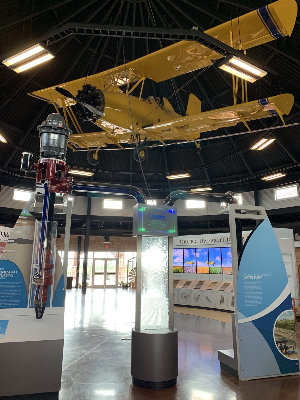 The Central Exhibit hall features the Crops: Harvesting the the Facts exhibit about the major crops grown in the United States, The Cotton Harvesting Experience, and the BASF FiberMax Exhibit. These exhibits are interactive with a focus on modern agriculture, its science, and practices.
